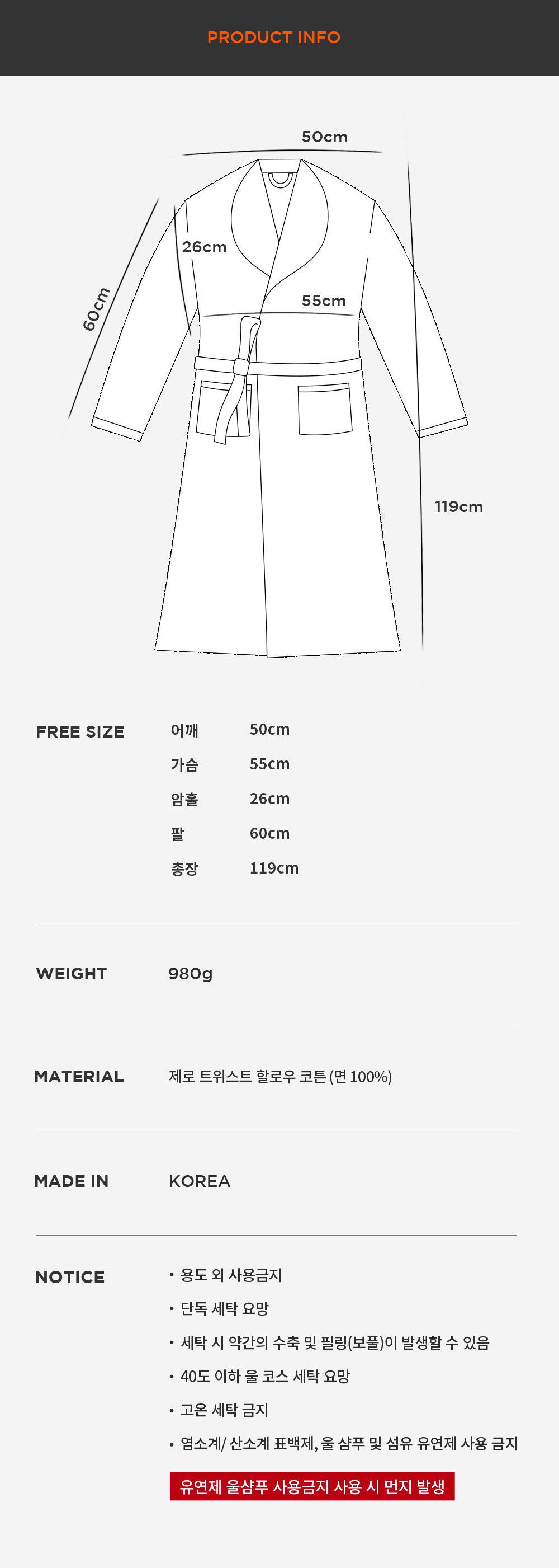 유연제를 사용하면 먼지가 발생되니 세탁 시 주의 부탁드립니다.