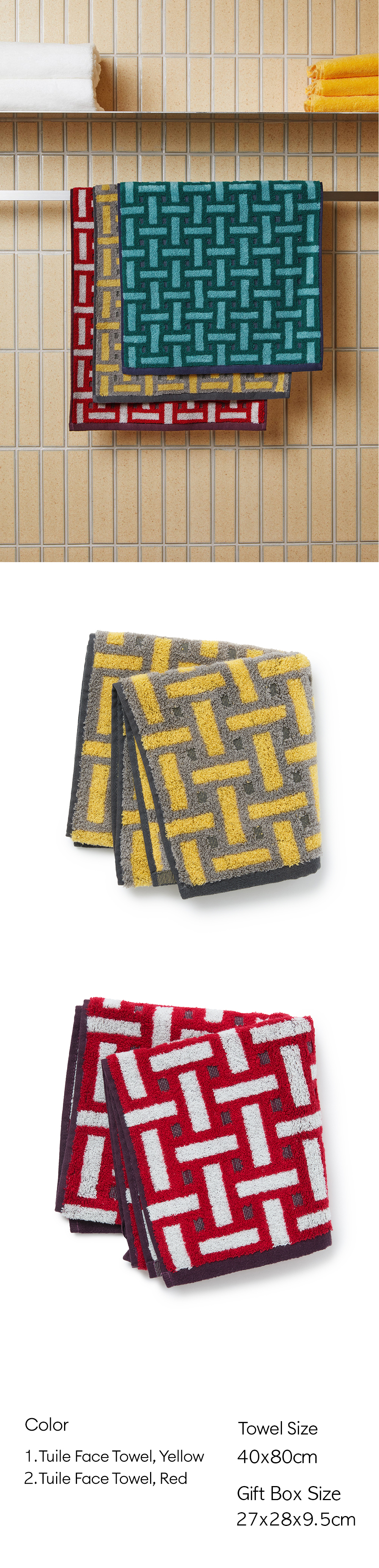 The Towelogist Graphic Line expands the role of towels beyond everyday essentials, presenting them as a medium for interpreting materials and space. The first collection in this series is the Tuile Towel.