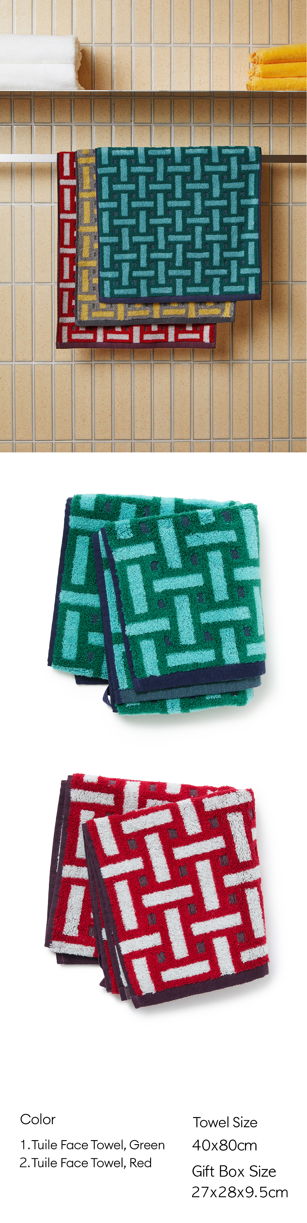 The word tile originates from the French term “tuile.” While tiles bring character and visual depth to a space, they are often difficult to choose due to installation and maintenance concerns. Towelogist reinterpreted the appeal of tiles into a form that can be enjoyed effortlessly in daily life, creating a towel that adds pattern, rhythm, and visual interest to any bathroom. A single towel can introduce a subtle yet refreshing change to the space.