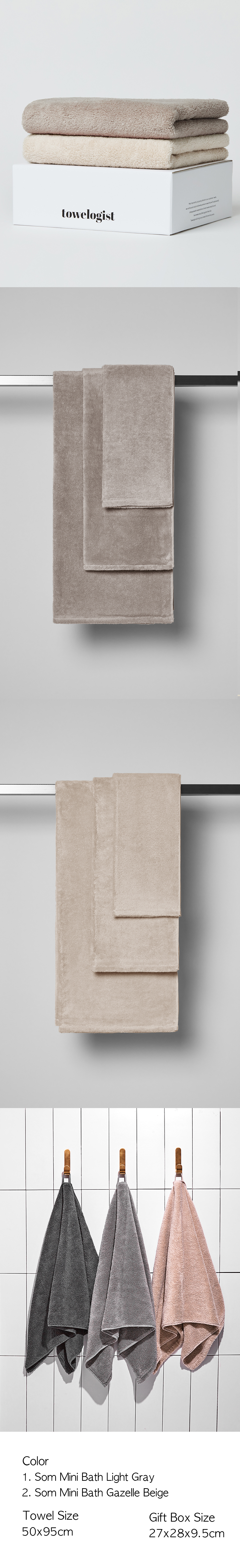 Towelogist’s Mini Bath Towel has been a signature size of the brand since 2019, produced in a 50×95cm format. This offers approximately 40% more surface area than the commonly used 40×85cm face towel, making it ideal for post-shower use, wrapping the body, or drying hair. Designed for maximum daily usability, it is one of Towelogist’s most representative and practical sizes.